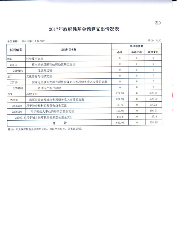 >> 2022年中山市第三人民医院部门预算